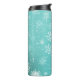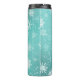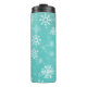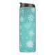 Los copos de nieve blancos y la nieve en un fondo de verde azulado.