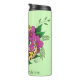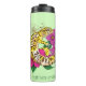Un gecko leopardo se sienta entre las flores y la henna sobre un fondo verde