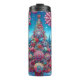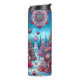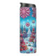 Este ilustracion vibrante y caprichoso representa un paisaje invernal festivo lleno de árboles navideños de colores vivos. Los árboles y el cielo están adornados con intrincados estallidos ornamentales y con motivos de mandala, lo que crea una mágica y detallada escena de vacaciones. Es una obra de arte colorida y festiva.