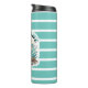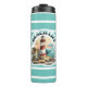 Botella de Agua térmica Vida de Playa. Ilustración de una escena playera con faro, tablas de surf, palmeras y delfín.