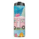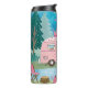 Adorable hand-drawn camping scene featuring a pink vintage camper van with a crown, set in a whimsical forest with colorful trees, bunting, campfire, and cozy outdoor setup. A charming illustration full of playful details like a watering can, chair, table with treats, and magical starry sky. Perfect for glamping lovers, adventure seekers, and those who adore cute outdoor vibes with a fairytale twist.