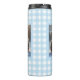 This adorable mug features a fluffy little hedgehog wearing a snow crown, reaching for delicate snowflakes. The background is a soft blue gingham pattern, giving it a cozy, storybook-like charm.