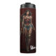 Echa un vistazo a este arte cómico muy detallado para Wonder Woman, blandiendo un arma en cada mano. Aquí sostiene la Espada de la Justicia, una lanza larga, y tiene un escudo en la espalda.