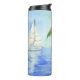 Playa tropical. Yate en el mar Palma en un día soleado. Acuarela. El ilustracion acuarela fue dibujado y escaneado. La imagen será a la vez un buen regalo y una magnífica decoración interior.