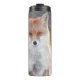 Termo zorro rojo, bosque de invierno, ilustracion pintor
