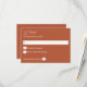 Envíe esta elegante tarjeta de comida de Boho Terra Cotta MOD Calligraphy RSVP con sus invitaciones para bodas y fiestas, incluyendo fiestas de graduación. con un fondo blanco. Consulte nuestra colección para ver la opción de la comida.