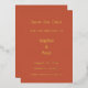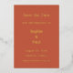 Terracota Guardar la invitación al Relieve metalizado de fecha, por favor, personaliza los nombres de la pareja, la fecha del boda y la ubicación del boda, utilizando la plantilla de personalización en línea antes de realizar el pedido. Si lo desea, puede personalizar la opción Guardar la fecha para un tipo de evento alternativo en lugar de un boda, cambiando el texto en consecuencia antes de realizar el pedido. La parte delantera de Save the Date incluye un hermoso texto de Relieve metalizado metálico real sobre un bonito fondo de color de terracota, mientras que la parte posterior de la tarjeta es de color de terracota liso.