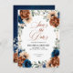 Elegante azul marino, Terracotta , boda temática Naranja de tierra floral salva la carta de fecha con elegante ramo de azul marino, rosas de color terracota y hojas de eucalipto verde. Comuníquese conmigo para obtener ayuda sobre la personalización o si necesita cualquier otro producto con este diseño.