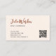 Esta elegante tarjeta de negocios con temática de terracota es perfecta para profesionales creativos, artistas y emprendedores. Con una tipografía limpia, acentos de onda modernos cálidos y un código QR personalizable, combina el estilo con la funcionalidad. Ideal para mostrar marcas personales mientras se hace una red sin esfuerzo. Editar detalles para que coincidan con la marca y la información de contacto. Impresionante con simplicidad y sofisticación.