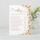 Haga de su recepción un lugar divertido con este juego de zapatos de Boda floral Terracotta Boho Pampas. Diseñada con rosas acuáticos y lirios de calila en audaces tonos de terracota, esta tarjeta interactiva de juegos es perfecta para bodas rústicos, bohemios o modernos. Una forma elegante de entretener a los huéspedes y crear recuerdos duraderos.
