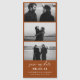 Esta tarjeta de ahorro de la fecha presenta un diseño vertical de tiras de fotos con tres imágenes en blanco y negro de una pareja en ambientes exteriores, creando un ambiente atemporal y romántico. La parte inferior es minimalista, con un fondo blanco limpio que muestra un elegante guión de estilo manuscrito combinado con la tipografía audaz sans-serif, que realza la estética moderna pero clásica.