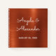 Crea tu propio libro de boda minimalista con un falso naranja de cobre con shimmer satinado y una gráfica de Relieve metalizado rojo oscuro. Hay varios estilos de interior de página entre los que puede elegir. Personalizar el estilo moderno del tipo de letra y color de la caligrafía de monolina para satisfacer tus necesidades. El gráfico presenta varios matices de tonos de tierra marrones y naranjas como la terracota oscura.