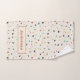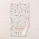 Modelada en baldosas italianas terrazo esta toalla de mano tiene un divertido y festivo toque de confeti en cálidos tonos tierra con un toque de color. La toalla de baño es moderna y está limpia, con baldosas falsas en gris, naranja oxidado, amarillo, gris-verde, verde menta y negro sobre un fondo de color crema. Está listo para ser personalizado con un nombre en negritas letras modernas de color naranja de óxido.