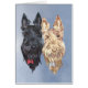 Territorios Escoceses de Wheaten y Black Scottish contra un fondo azul. Ven a visitar Maggie Ross Scotties Shop para ver todos los muchos diseños estacionales que presentan tanto perros escocés de trigo como negros creados a partir de mi arte original. Los diseños son personalizable, usando nuestra herramienta de texto fácil y disponible para la compra en novedad, regalos y prendas de vestir! ¡Arooo!