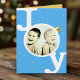 Foto de alegría en blanco, dorado y azul cielo estrellado tarjeta de felicitación navideña. Personalice con su propia foto alegre y mensaje personalizado dentro. Diseñado por Sarah Trett para www.mylittleeden.com