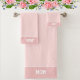 Texto de mamá en tonos rosas claros Juego de toallas de baño. El texto se puede personalizar. Texto sólo de un lado.