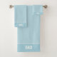 Texto de papá sobre el juego de toallas de baño azul diamante claro. El texto se puede personalizar. Texto sólo de un lado.