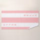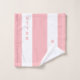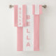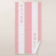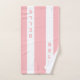 Texto vertical elegante sobre el conjunto de toallas color rosa y rayas blancas de coral claro. El texto se puede personalizar.