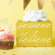 Papel de embalaje de vacaciones con un texto blanco de azulejos que dice ¡Yo creo! Puede personalizar que el fondo dorado sea cualquier color que desee.