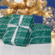 Papel de embalaje de vacaciones con un texto blanco de azulejos que dice ¡Yo creo! Puede personalizar el fondo verde azulado para que sea el color que desee.
