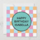 Guay, azul, blanco naranja y color rosa patrón de tablero de ajedrez y una plantilla de texto. Para editar, haga clic en personalizar y cambie las palabras.
