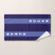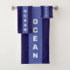 Elegante texto náutico oceánico sobre el conjunto de toallas azul marino y azul oceánico a rayas. El texto se puede personalizar.