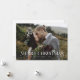 Estas elegantes y minimalistas tarjetas de Navidades de fotografía presentan una elegante y elegante tipografía en blanco como superposición que dice "Feliz Navidad". La foto de tu familia o pareja favorita aparece en la parte delantera de la tarjeta, y hay espacio para dos más en la parte trasera. También puede agregar un mensaje de vacaciones personalizado a la parte posterior.