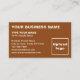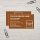 Tarjeta de visita que puede personalizar para que sus clientes o clientes encuentren fácilmente su dirección de negocio e información de contacto. Los colores de diseño y el estilo son textos marrones y blancos sobre fondo marrón y textos alineados a la izquierda. Para personalizar de esta tarjeta de visita, sube el logotipo de tu empresa, escribe tu nombre de negocio, tu nombre, tu título, dirección, número de teléfono, correo electrónico y sitio web o tu página de red social de empresa. Después de subir el logotipo y escribir textos, por favor compruebe la apariencia en el frente y en el trasero. Si la apariencia le resulta agradable, puede realizar su pedido ahora. Si necesita cambiar el tamaño y mover el logotipo y los textos para que encajen en esta tarjeta de visita, cambie la herramienta de diseño. También puede realizar otros cambios en la herramienta de diseño según el aspecto de esta tarjeta de presentación que prefiera, como cambiar el color de fondo, el color de fuente y el estilo de fuente.