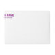 El ajuste de personalizable en torno a la etiqueta de dirección de retorno para que pueda poner su nombre y dirección de negocio en sobres o paquetes. También puede utilizarlo como material de marketing para promocionar su negocio o promocionar su marca a clientes o clientes. Ajuste de personalizable en torno a la etiqueta de dirección de retorno que también puede utilizar para crear conciencia de nombre de marca. El diseño es textos morados sobre fondo blanco. Para personalizar este ajuste en torno a la etiqueta de dirección de retorno, cargue el logotipo de su empresa, escriba el nombre y dirección de su empresa o empresa. Después de subir el logotipo y escribir textos, por favor compruebe la apariencia. Si la apariencia le resulta agradable, puede realizar su pedido ahora. Si necesita cambiar el tamaño y mover el logotipo y los textos para que encajen en este ajuste alrededor de la etiqueta de la dirección de retorno o en otros estilos que elija, por favor, cambie en la herramienta de diseño. También puede realizar otros cambios según la apariencia que prefiera en la herramienta de diseño, como cambiar el color de fondo, el color de la fuente y el estilo de fuente.