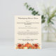 Cream colored background decorated with orange fall flowers and pumpkins. Personalize and add your Thanksgiving menu on the front.