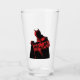 Red stylized graphic of Batman holding up his cape with The Batman theatrical logo on top.
