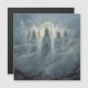 Seven crowned figures rise from drifting mist, their white robes glowing with quiet power.