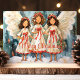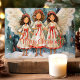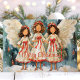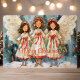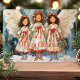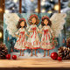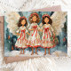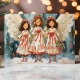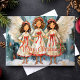 Envía bendiciones navideñas con esta encantadora tarjeta de Navidad que presenta a tres niñas angelicales del coro, vestidas con trajes festivos blancos y rojos. La suave y cálida ilustración captura el espíritu de la temporada, con los ángeles rodeados de un mágico paisaje invernal. Esta tarjeta conmovedora es perfecta para compartir la alegría de la Navidad con seres queridos.