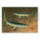 Ilustración vintage de diseño acuático de vida marina con tiburones azules acechando y comiendo peces en el mar. El tiburón azul (Prionace glauca) es una especie de tiburón requiem que vive en las aguas profundas del océano. Los tiburones azules tienen aletas pectorales largas, la parte superior de su cuerpo es de un azul intenso que se aclara gradualmente en los lados y su parte inferior es blanca. Del libro de la Era Victoriana 'The Royal Natural History' (1894) de Richard Lydekker, artista e ilustrador: PJ Smit.