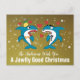Tiburones de Navidad de Dibujos Animados Jawlly Buenos en Oro con Tarjetas Postales de Texto de Tipografía Personalizada.