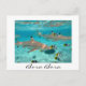 Postal de tiburones de arrecife de punta negra y peces mariposa durante el submarinismo de la clara laguna azul de la isla pacífica de Bora Bora, cerca de Tahití en la Polinesia Francesa con el texto: 'Bora Bora'.