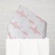 Papel de tejidos que muestra a una madre rosa y un tiburón bebé en un patrón repetido en un fondo blanco.