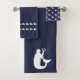 Merman con tiburones tigre Bathroom Ocean blue and white towset design by Sandy Closs