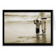 Tarjeta romántica con madre caminando su hijo en la playa.