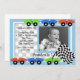 Personalice nuestro diseño "Tiempo de Carrera" para cumpleaños, duchas para bebés y más. Cambia todas las palabras e incluso los números en los autos de carreras.
