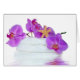 Orquídeas rosas y audaces con estrellas de mar sobre un montón de toallas blancas.