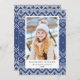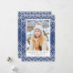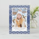 Elegante tarjeta fotográfica de vacaciones con un patrón de suéter azul y blanco con marcadores de posición de fotos y texto.