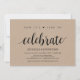 Ahora es el momento de celebrar, tarjeta de invitación de recepción de boda fuga. Esta tarjeta de invitación temática de boda fuga kraft rústica es perfecta para su recepción de boda y fiesta de celebración después de la boda. Agregue sus detalles en fuente / letra negra coincidente.