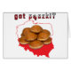 Paczki o Ponczki, un delicioso rosquero relleno polaco, es un postre polaco tradicional. Apuesto a que no puedes comer solo uno. Prendas de vestir y artículos de regalo polacos con la foto de un grupo de paczki sobre un mapa rojo y blanco de Polonia con las palabras ¿se pusieron paczki? en los colores de la bandera de Polonia.