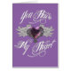 Elegante, ornamentado diseño de corazón rosa alado de gótico para El día de San Valentín que dice "Tienes mi corazón", sobre el fondo de "Orquídea Ametista"