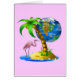 Flamenco con la palmera en la playa con la tierra que cuelga en cielo. Usted puede elegir su propio clik del color de fondo apenas en personalizar