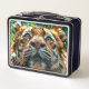 Esta caja de almuerzo tiene un tigre encima.