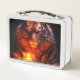 Esta caja de almuerzo tiene un tigre encima.
