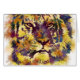 Un retrato estilizado de una acuarela de un tigre. El amarillo intenso, el azul profundo y el violeta contrastan entre sí.
