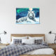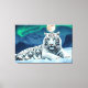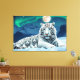 Este es un tigre blanco hermoso con sus dos cachorros diseño de arte de vida salvaje. Presenta a una madre tigre blanca tendida en la nieve de la montaña con sus dos cobs en una noche de luna llena con brillantes luces norteñas en el fondo. Se encuentra en un marco de arte de tela estirada, listo para colgar. Viene en muchos tamaños. Gran regalo para ese amante de los tigres blancos.